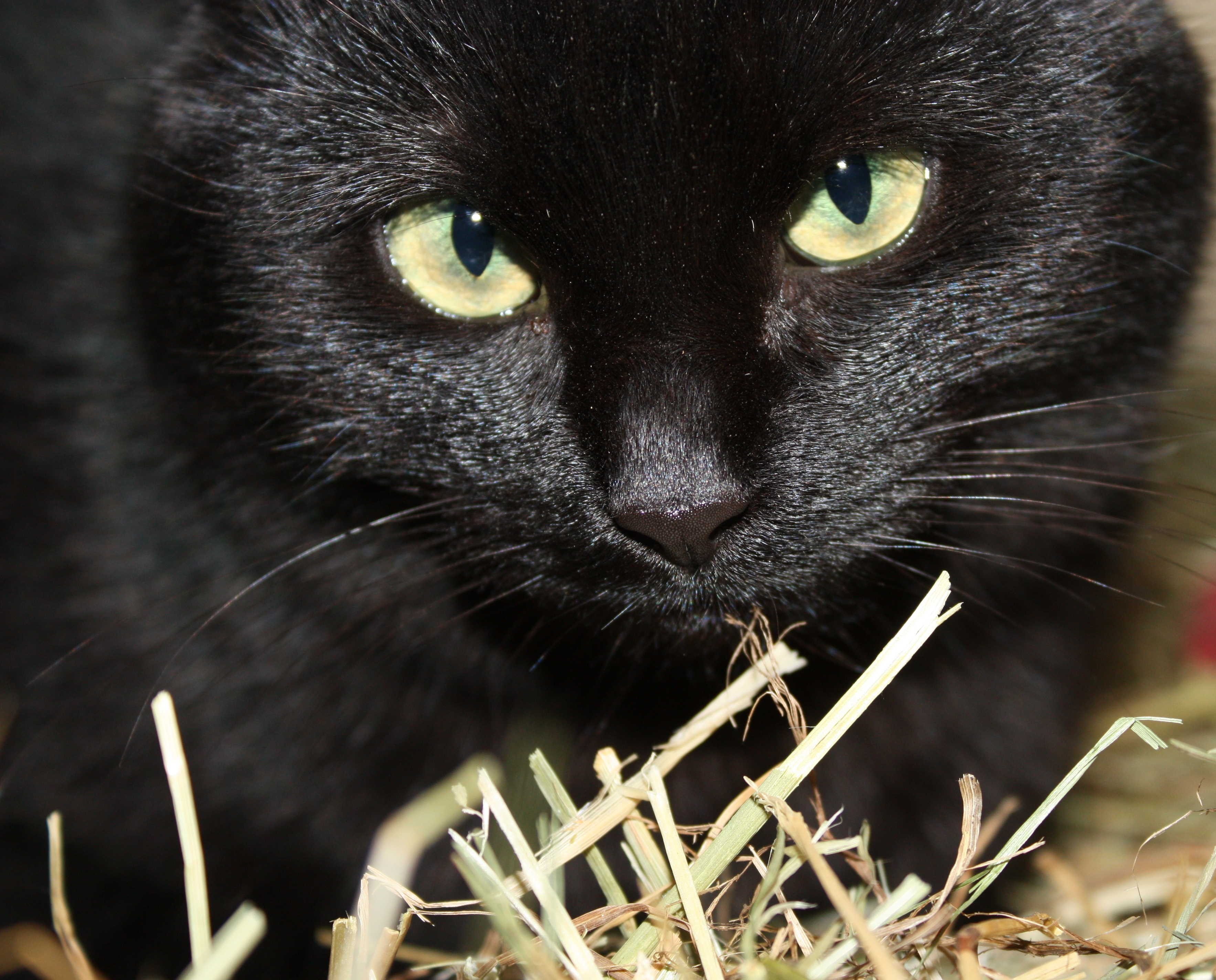 Son poil terne et parsemé, de grosses boules d'infection sur la tête, des yeux qu'il pouvait à peine ouvrir, sont autant d'exemples qui donnent une idée de l'état dans lequel il se trouvait... Inévitablement, visite chez le vétérinaire, qui a été très sceptique quant aux capacités de guérison du malheureux animal. C'était sans compter sur sa volonté de vivre. Il s'est battu presque 2 mois, pour devenir le joli chat noir qu'il est maintenant.